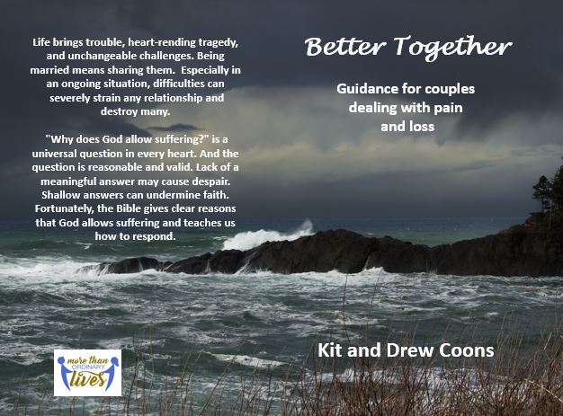 “This treasure is like a healing balm, a warm hug and filled with hope. Life brings about unexpected challenges. Our marriage gives us someone to walk through trials and triumphs with. This little book reminds readers that there is always purpose in our pain and that God is with us in that pain. Kit and Drew share honestly about their own struggles and point the reader to the lasting hope found in God’s Word and His unchanging character. Included are meaningful questions for personal or group consideration. This little book is one that I will re-read and surely gift to others!”