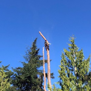 A four-foot diameter hemlock died and remained precariously hovering 150 feet over our house. Western hemlocks have little rot resistance and thereby fall within a few years of dying.